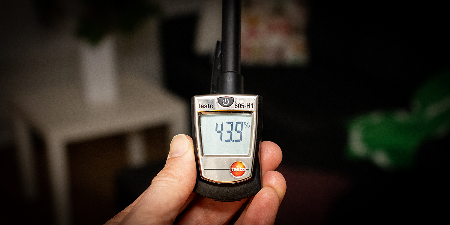Hygrometern mäter både temperatur och luftfuktighet. Den kan användas för att kontrollera att temperatur och luftfuktighet är på en önskvärd nivå. Långvarigt hög luftfuktighet kan öka riskerna för fuktskador och påväxt i byggnader.