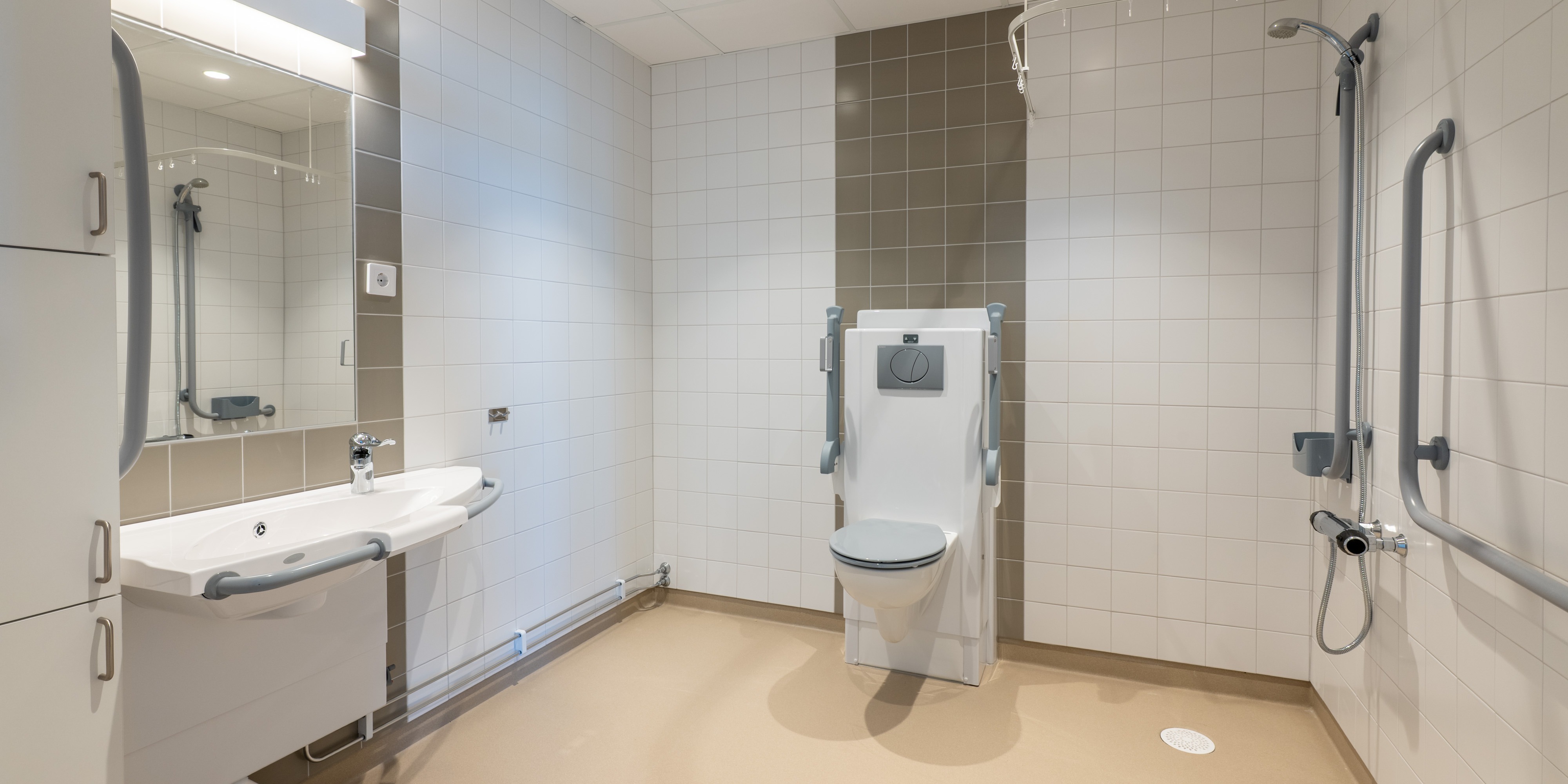 Toaletterna är tillgänglighetsanpassade för dig som ska bo här.