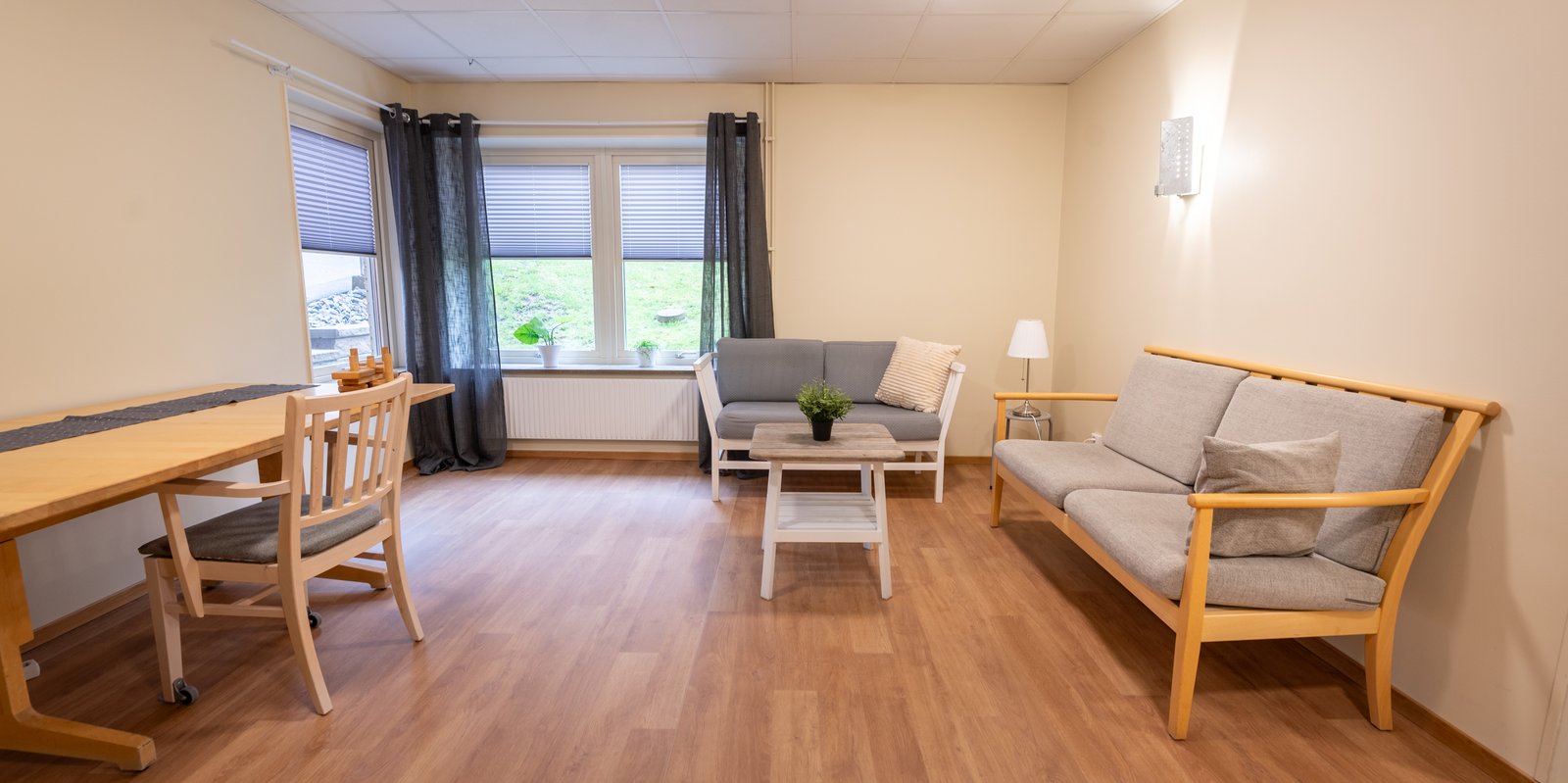 Alla lägenheter är handikappanpassade och har egna badrum med dusch. Lägenheterna är utrustade med höj- och sänkbar säng.