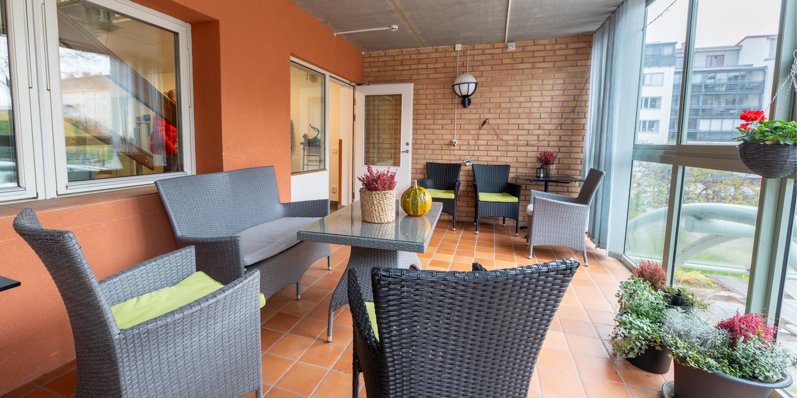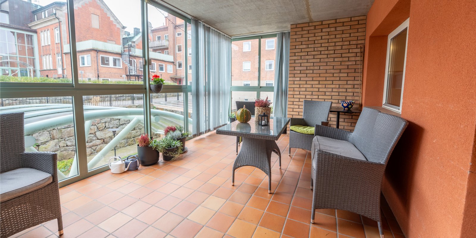 Tvårums-lägenheter har även egen tvättmaskin och torktumlare. Lägenheterna har fransk balkong med utsikt mot den lummiga bakgården eller Tullparken.