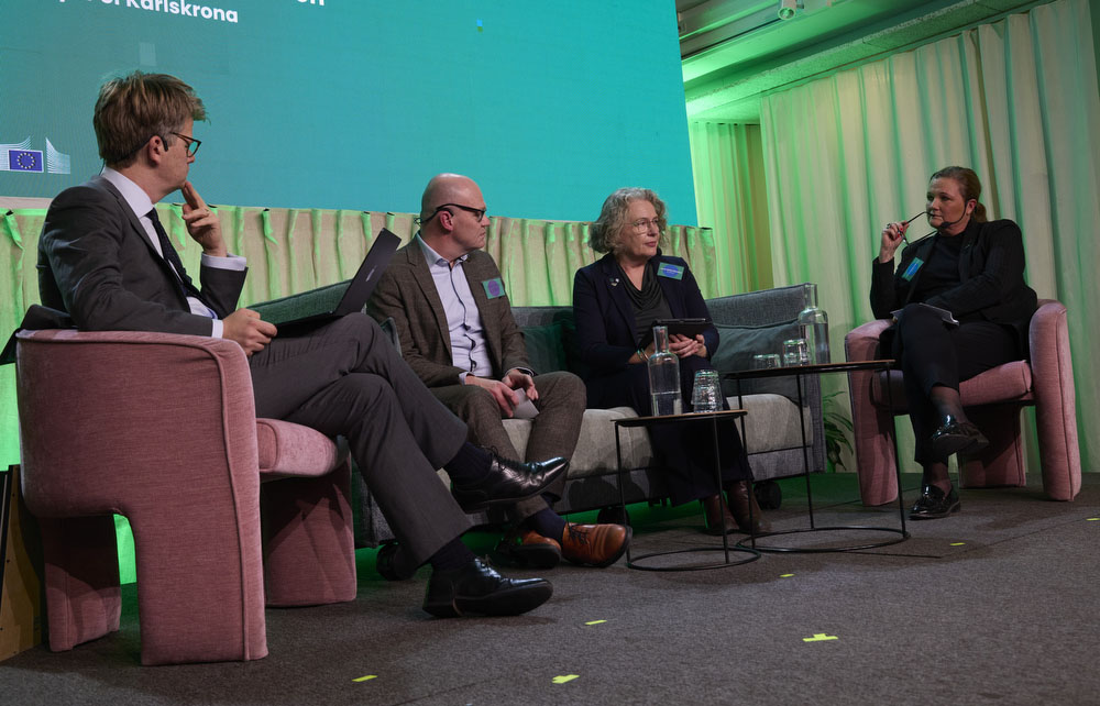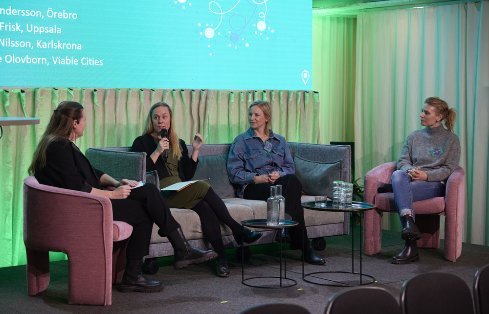 Linda Nilsson, miljöstrateg på Karlskrona kommun och processledare i arbetet med Viable Cities i Karlskrona, deltog i panelsamtal tillsammans med Uppsala och Örebro på temat metoder och arbetssätt. Hon berättade om klimatarbetet i Karlskrona, till exempel om hur vi samverkar med BTH och tillämpar deras metod i arbetet för en hållbar omställning.