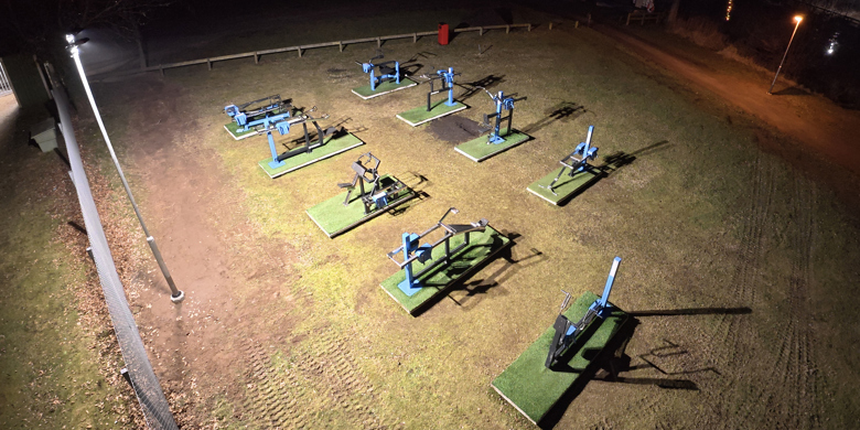 Nu har belysning kommit på plats vid det nya utegymmet intill Lyckåvallen. Det betyder att du är välkommen att träna dygnet runt.