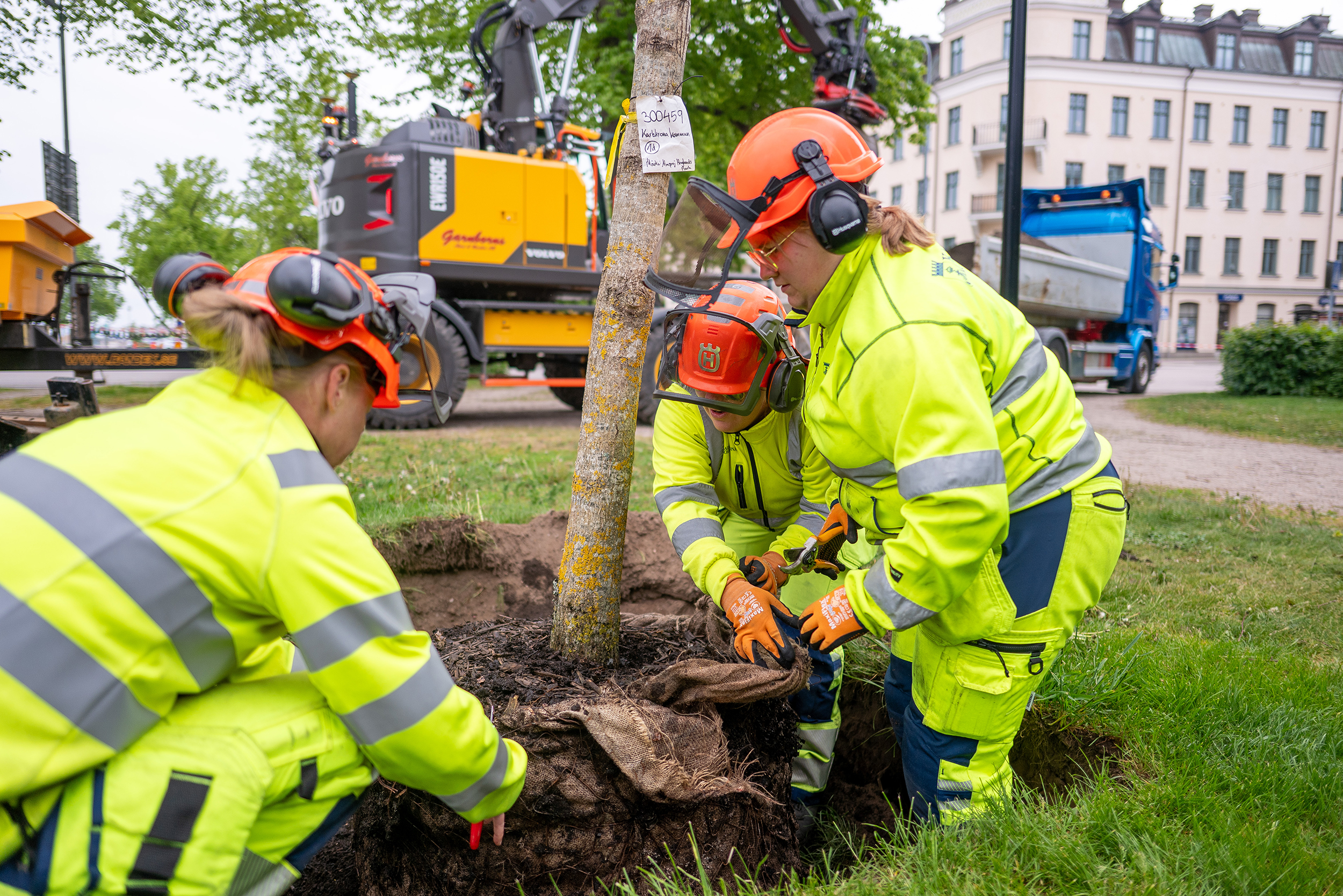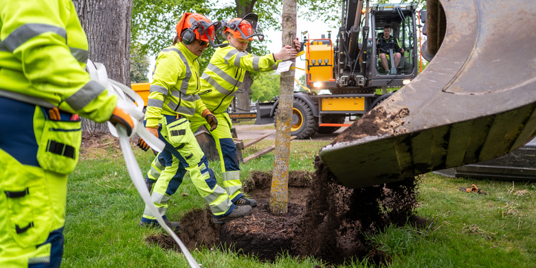 – Att plantera träd är en livsgärning som ska firas. Det är viktigt att vi förnyar så att det hela tiden finns nya framtidsträd som kan stå här 100–150 år framåt i tiden, säger Margareta Jalling, som är arbetsledare på kommunens gata/park-enhet.