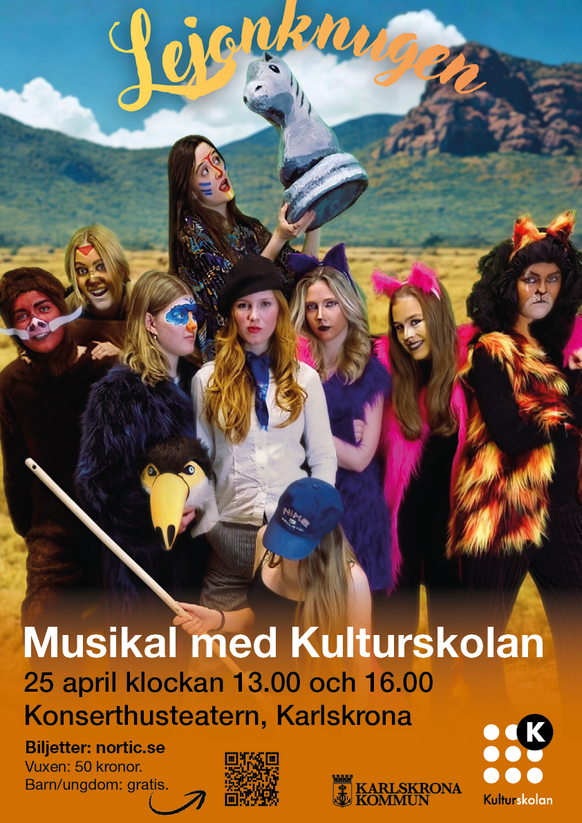Eleverna på kulturskolan i Karlskrona bjuder in till att se en musikal och ett mysterium samtidigt eller en Mystikal som den har kallats under terminen. Publiken kommer att få se alla delar av vad kulturskolan har att erbjuda, med sång, dans, teater, bild, form och film, hopkokat till musikalen ”Lejonknugen”.