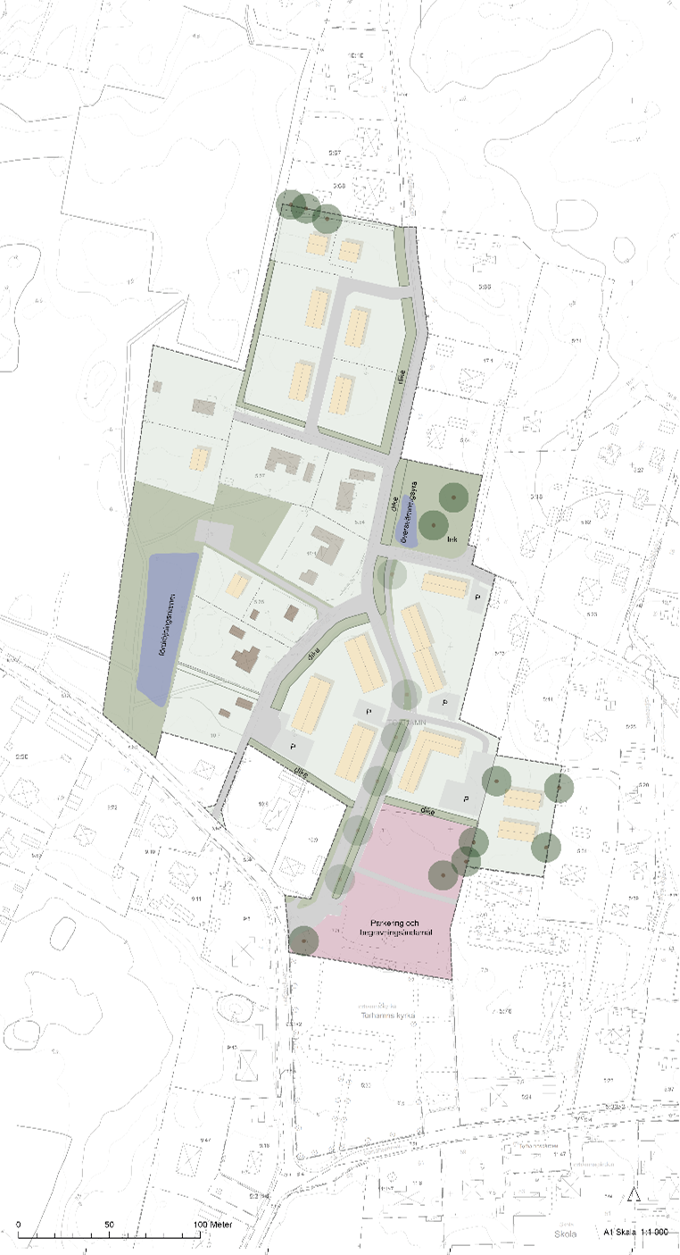 Planområdet är utpekat för förtätning i Översiktsplan 2050, vilket innebär att området är utpekat för utveckling genom förtätningsåtgärder. Planförslaget innebär en utveckling med ett nytt bostadsområde med varierande bostadstyper. Den nya bebyggelsen föreslås bli flerbostadshus och småhus, där både sammanhängande och fristående bebyggelse möjliggörs. Den nya bebyggelsen möjliggörs i 2,5 våningar (två våningar med inredd vind) i delar av planområdet samt 2 våningar i övriga delar. Sammantaget föreslås området kompletteras med ca 60-80 bostäder. Beroende på vilka typer av bostäder som byggs kan antalet dock variera. Den föreslagna bebyggelsen tillåts bli tätare än anslutande bebyggelse med mindre tomtmark till varje bostad för att möjliggöra ett varierat bostadsutbud, skapa tilltalande bebyggelsemiljöer och möjliggöra för en effektiv markanvändning.