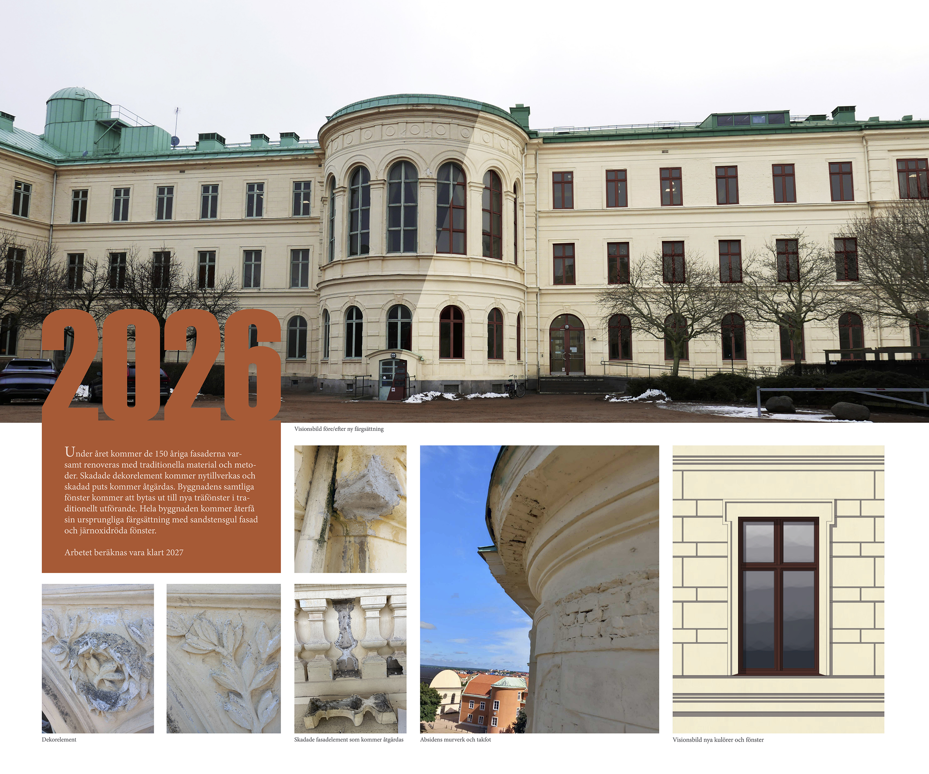 Byggnaden är kulturhistoriskt värdefull och både fasader och fönster har med tiden fått ett omfattande underhållsbehov och en renovering är därför nödvändig för att:
