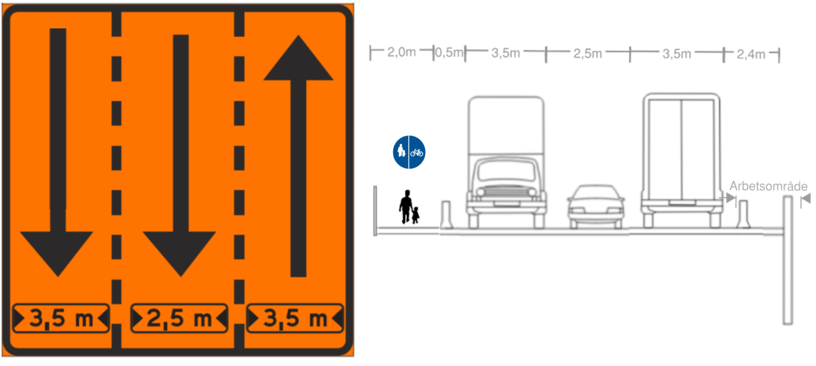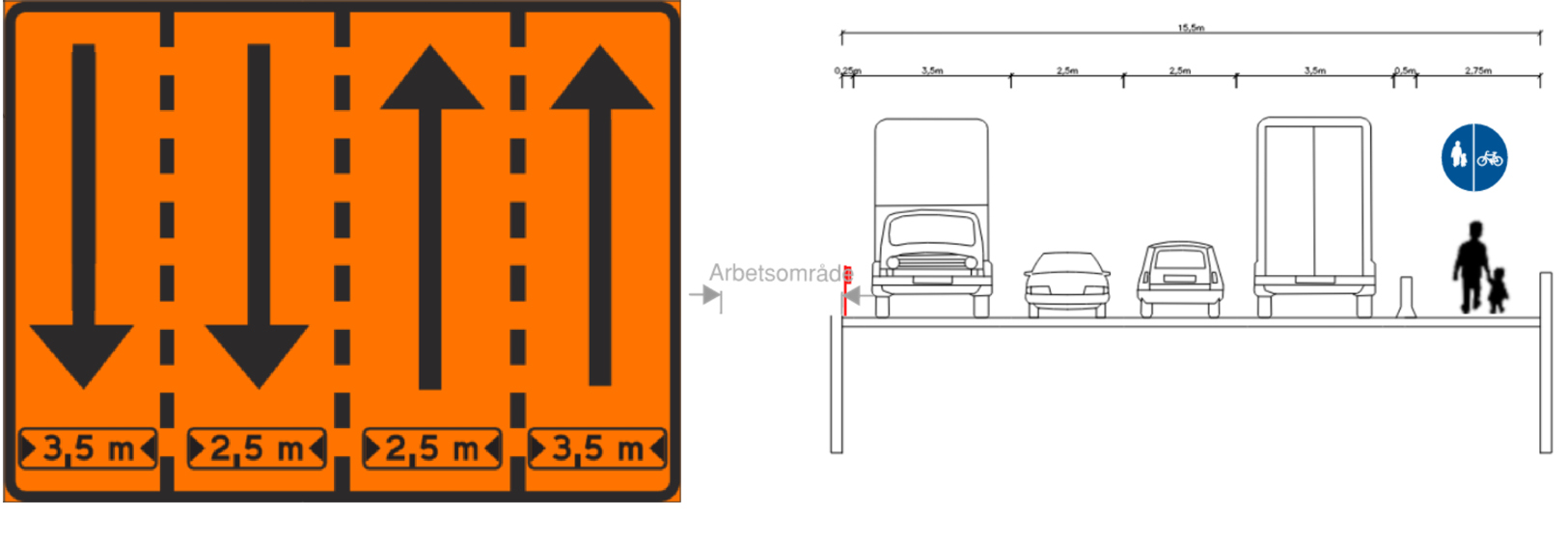 - Gång- och cykeltrafiken stängs av på den västra sidan av infartsleden och flyttas till den östra sidan.